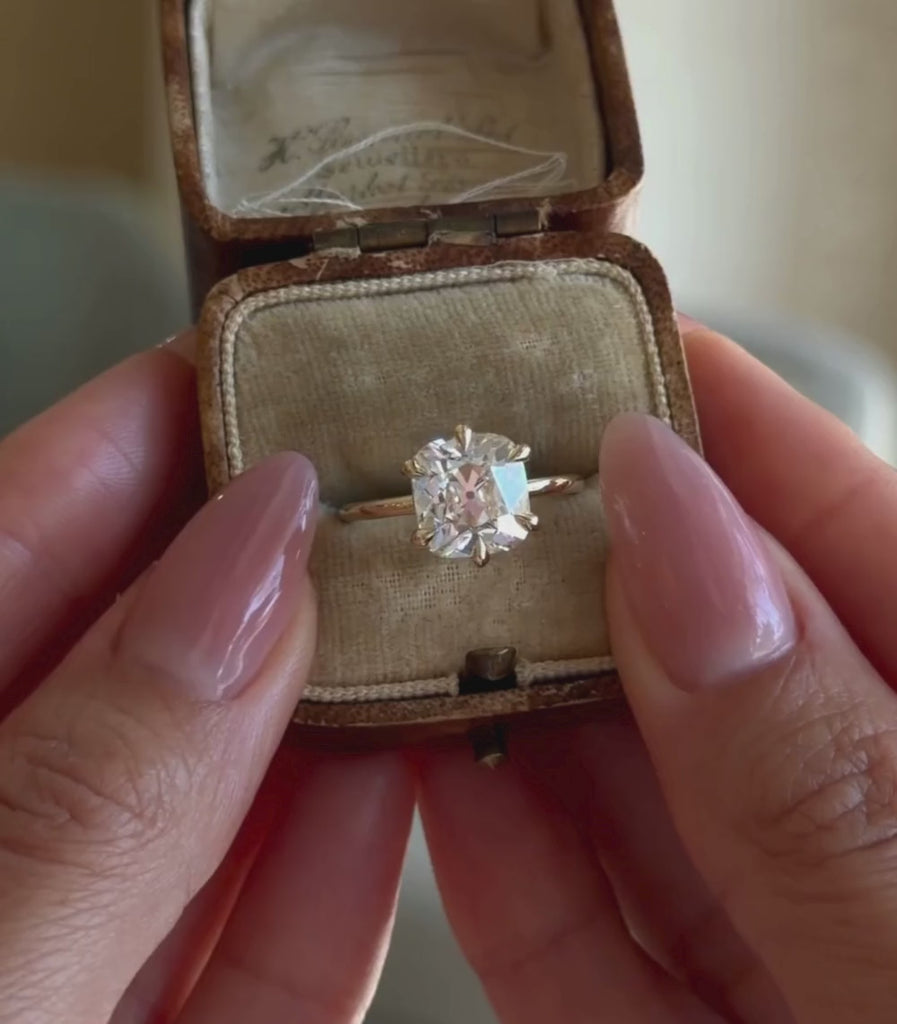Elegance with an edge. We love the simplicity of a solitaire, especially when it comes with a twist. This show stopping engagement ring features a captivating 3.51ct Old Mine style Cushion cut lab grown diamond.