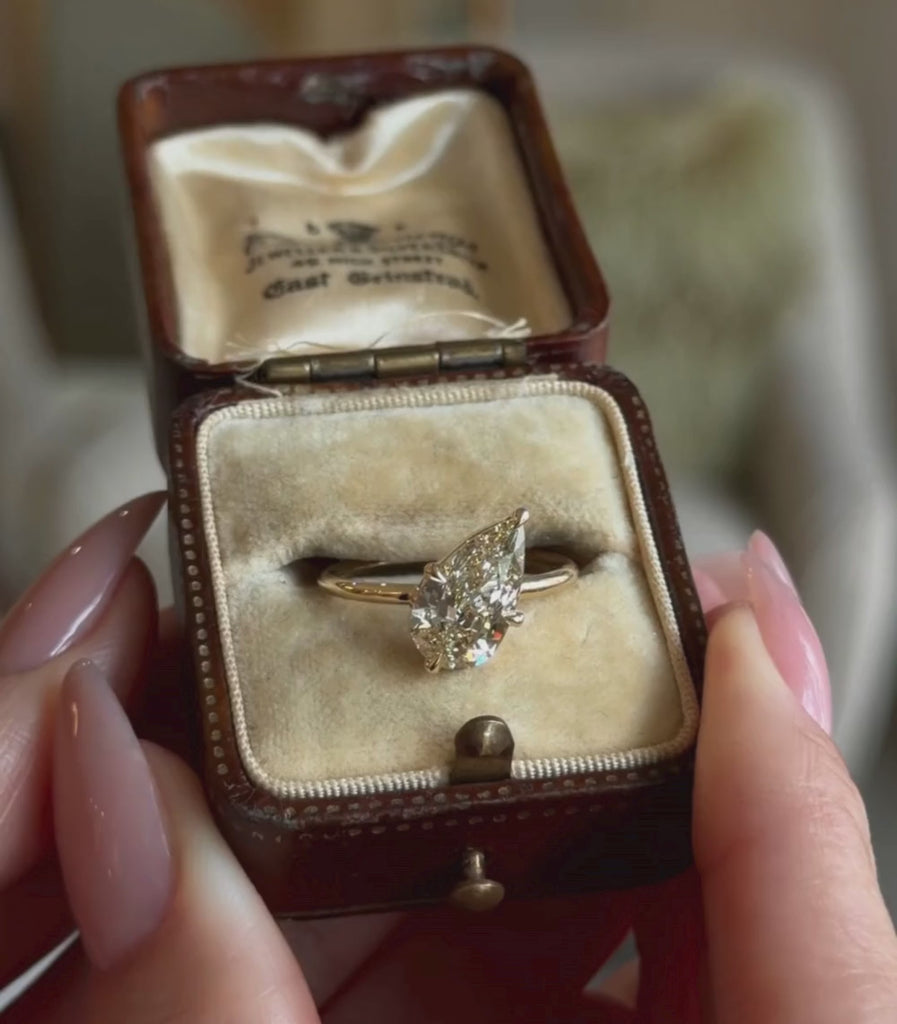 A classic solitaire… with a wink. Kate has always been our ode to simplicity: clean lines, effortless, quiet. But this time, she’s taking a little detour from tradition. Featuring a gorgeous elongated 2.01ct champagne pear diamond set at a subtle, intentional tilt, this version of Kate feels fresh, flirty, and impossibly chic.