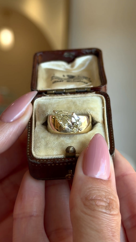 Meet Lana — She’s bold, buttery, and built for attention. Set on our signature 8mm Essential band, Lana features a 2.96CT natural champagne Pear diamond in the dreamiest sunny shade. Think honey-drizzled sunsets with just the right amount of sparkle.